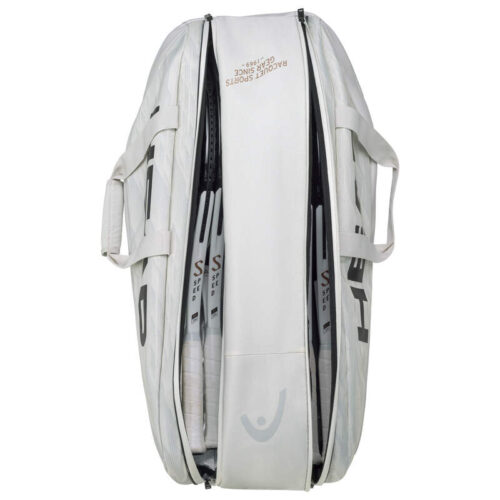 Podrás llevar hasta 9 raquetas en esta bolsa, que incorpora la tecnología CCT+ de control térmico para protegerlas de temperaturas extremas. Algo más pequeña que su hermana mayor, la PRO X RACQUET BAG XL YUBK, la PRO X RACQUET BAG L YUBK ofrece gran capacidad de almacenamiento con dos compartimentos, así como un bolsillo interior y dos bolsillos exteriores. Gracias a su sistema de transporte de mochila, puedes llevar la bolsa de tenis DJOKOVIC 9R SUPERCOMBI cómodamente colgada al hombro o en la espalda. Como ejemplo de cómo HEAD está tratando de reducir el uso de plástico, la etiqueta está hecha de papel reciclado y unida a la bolsa con un cordel de cáñamo.
